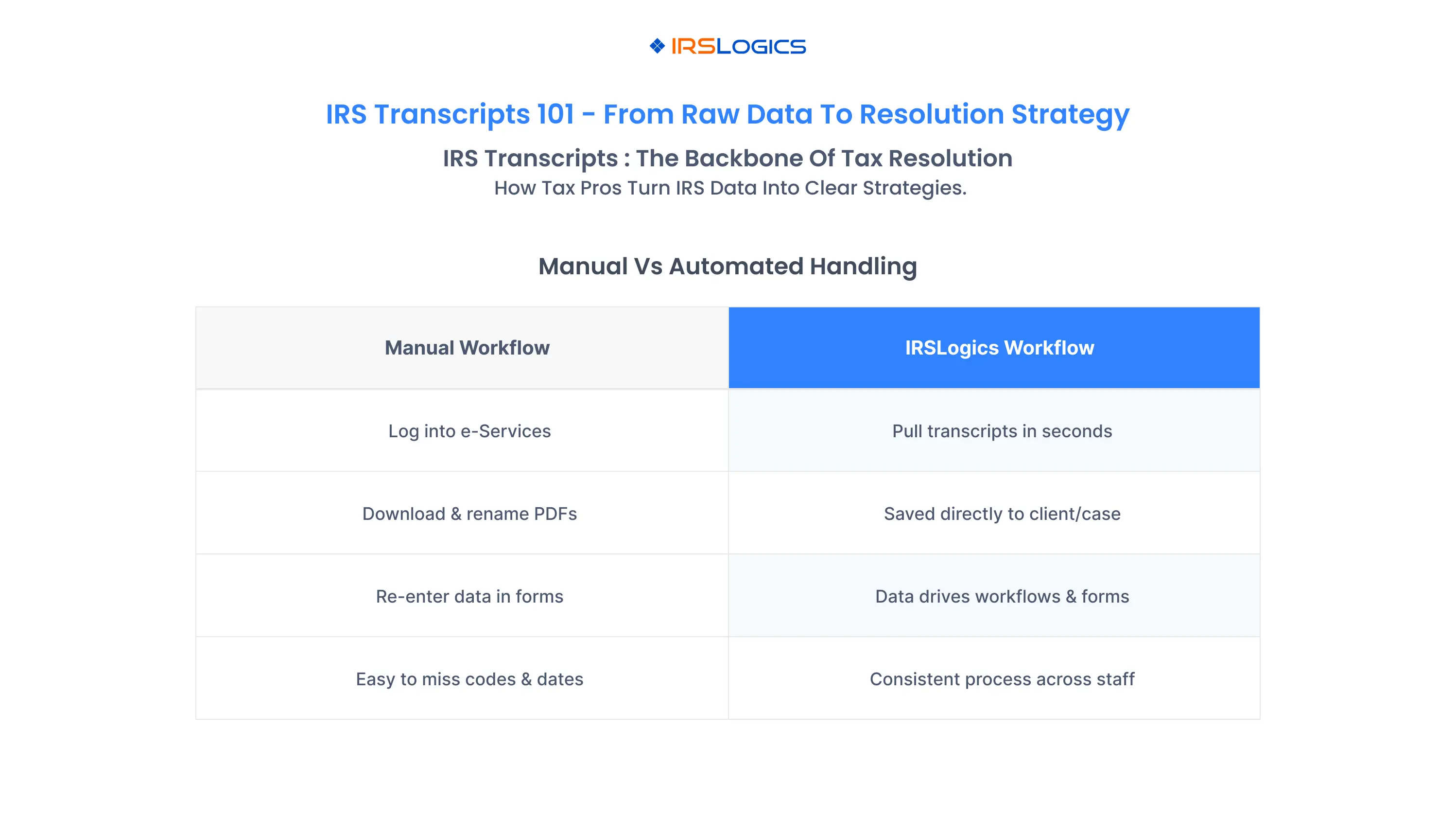 How IRSLogics Automates IRS Transcripts for Tax Resolution Pros