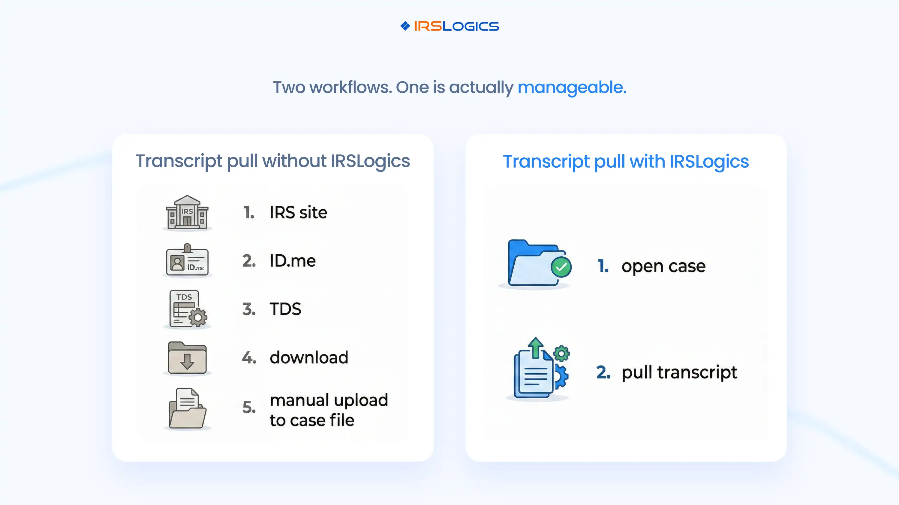 Both firms have the transcript. One of them has a workflow. For firms evaluating what that workflow looks like at the transcript stage specifically, the IRS Transcripts 101 guide on the IRS Logics blog covers the foundational concepts.