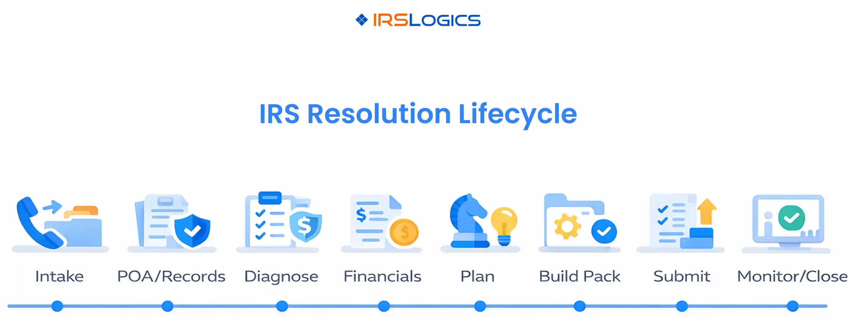 Tax resolution case management is the end-to-end process of moving IRS representation cases through intake, authorization, diagnosis, submission, follow-up, negotiation, monitoring, and closure with clear ownership and documentation.