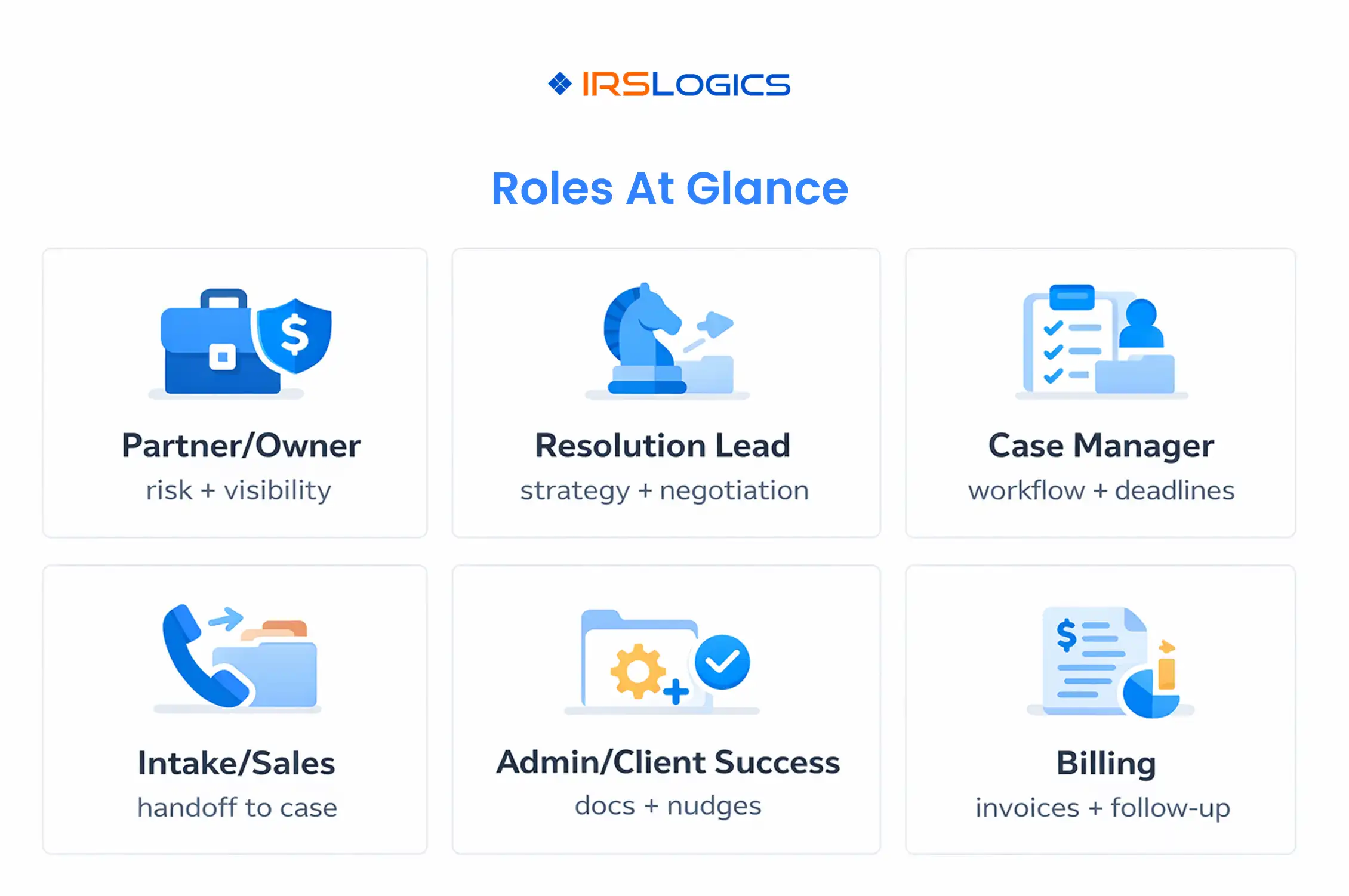 IRSLogics positions itself as a tax resolution-first platform that combines workflows, roles and permissions, reporting, and multi-office support, built around IRS representation work.