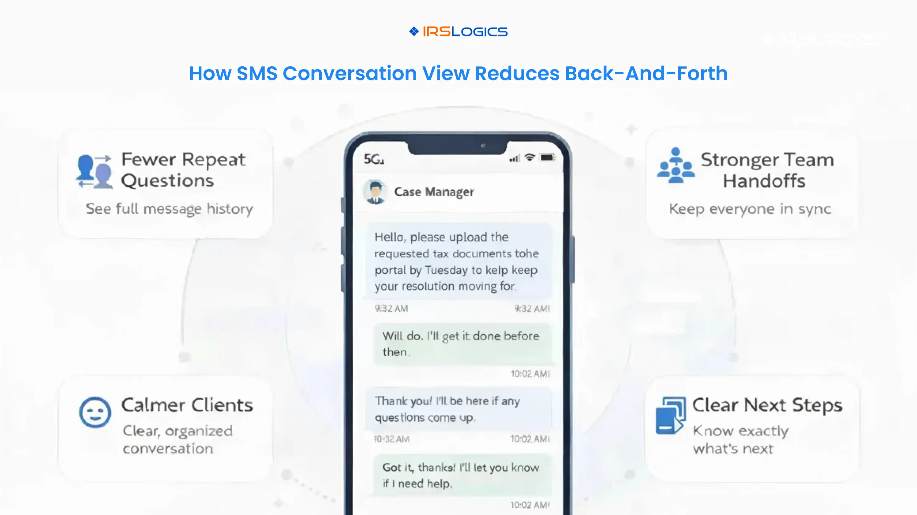 Internal link suggestion: Tie this section to IRSLogics workflow and communication features, so readers connect texting to case progress.