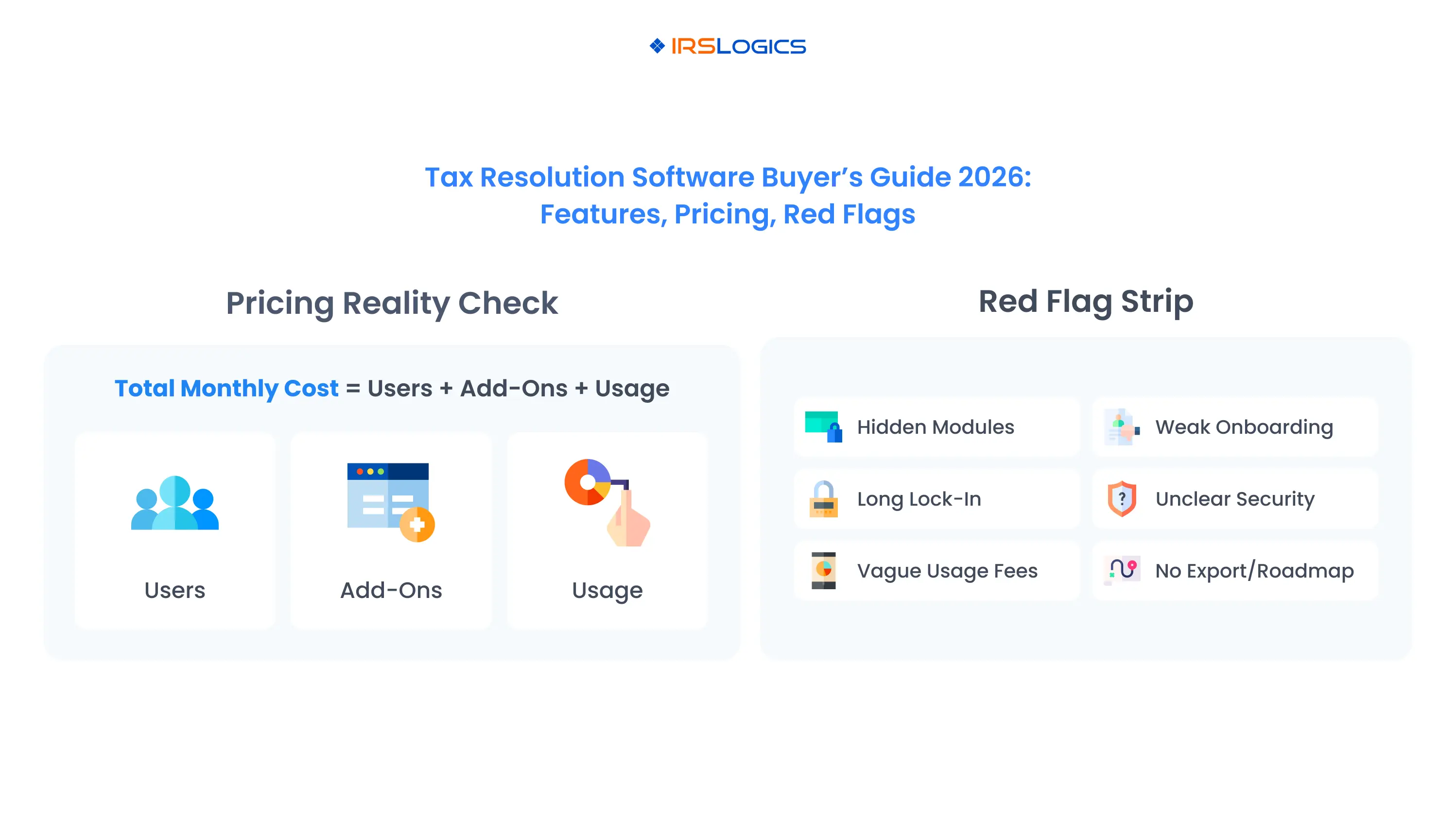 Throughout the guide, you will see examples of how IRSLogics and other providers structure features and pricing, so you can compare the market in a grounded way.